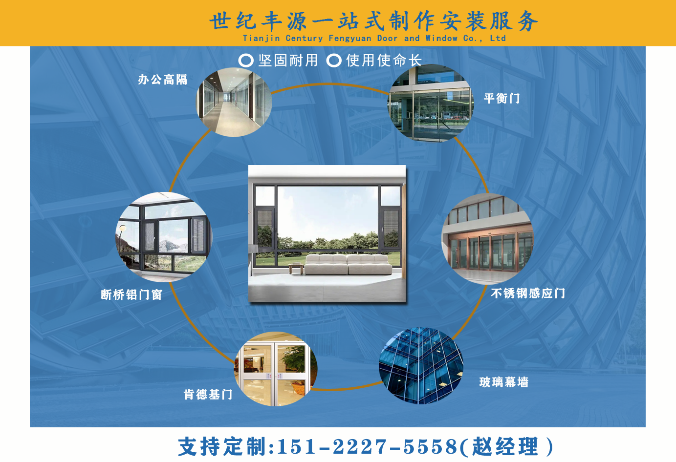 天津斷橋鋁門窗,天津玻璃幕墻,天津平衡門,天津肯德基門,天津不銹鋼感應門,天津百葉窗,天津辦公高隔,天津制作安裝-天津世紀豐源門窗有限公司